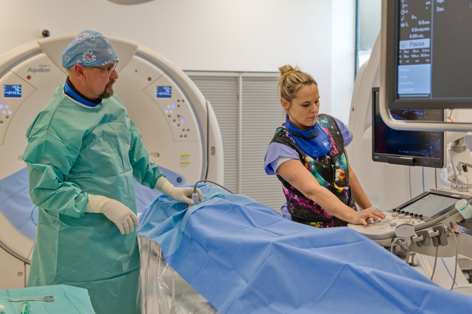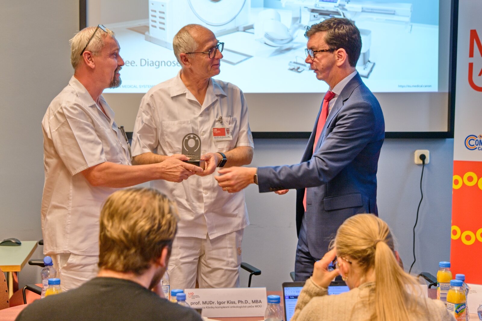 „To, co činí Canon Alphenix 4DCT unikátním, je provázanost dvou modalit. Japonský výrobce se tradičně soustředí na bezpečí pacienta systém si vystačí s velmi nízkou dávkou ionizujícího záření. Ušetřil onkologickému ústavu jednu RTG vyšetřovnu, neboť sloučil oba přístroje do jedné místnosti,“ vysvětluje David Navrátil, ředitel dodavatelské firmy AURA Medical.
